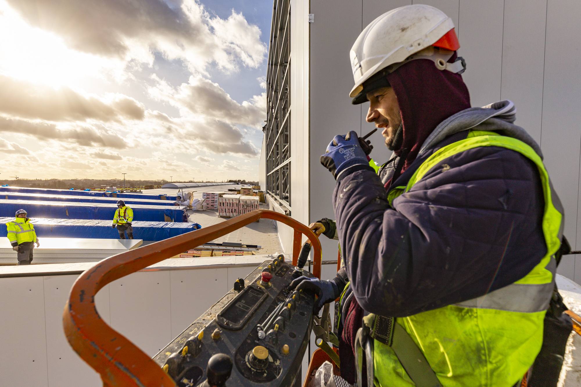 Voor de echte close-ups kropen we zelfs mee in de hoogtewerker en kraan — alles voor de beste invalshoek.